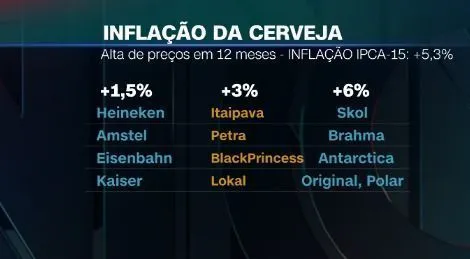 Na direção contrária, a Skol, Brahma, Antarctica, Original e Polar tiveram um aumento de 6%.