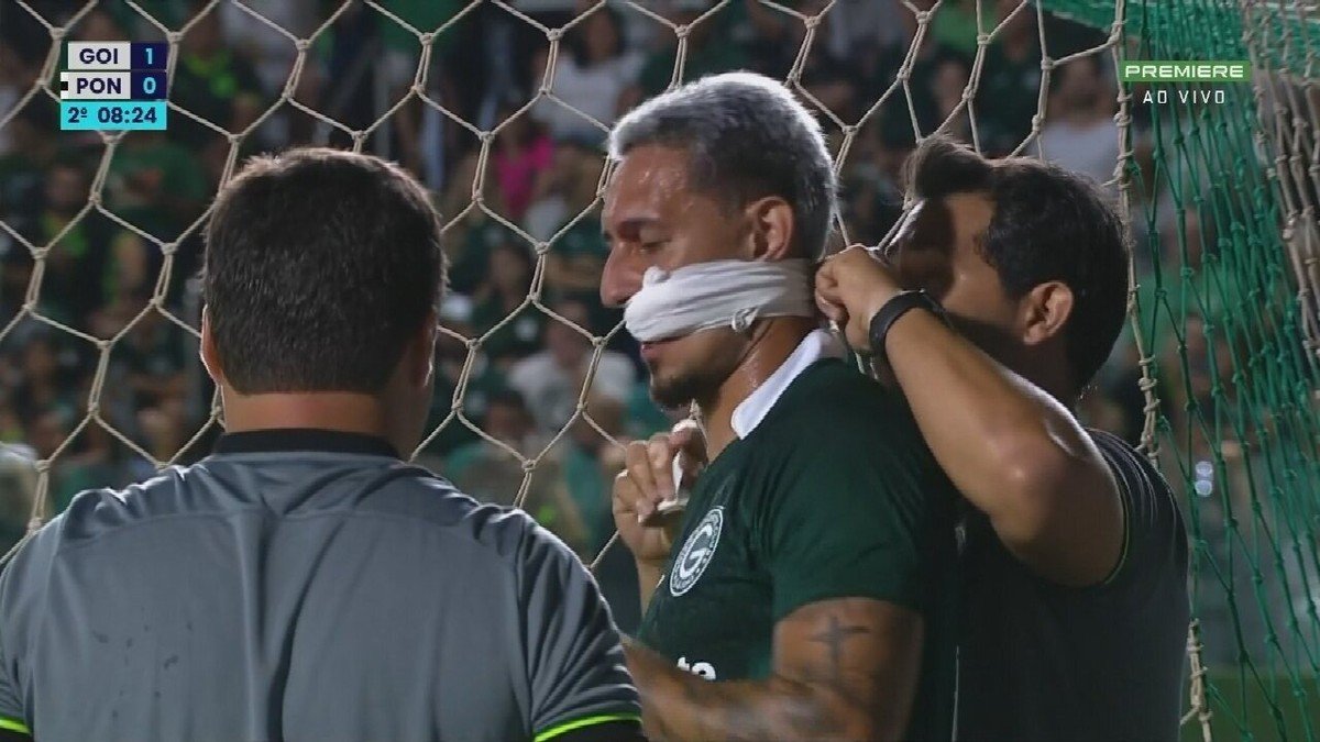 “Gol de múmia?”: Breno Herculano “dá o sangue” pelo Goiás e chama atenção com curativo bizarro